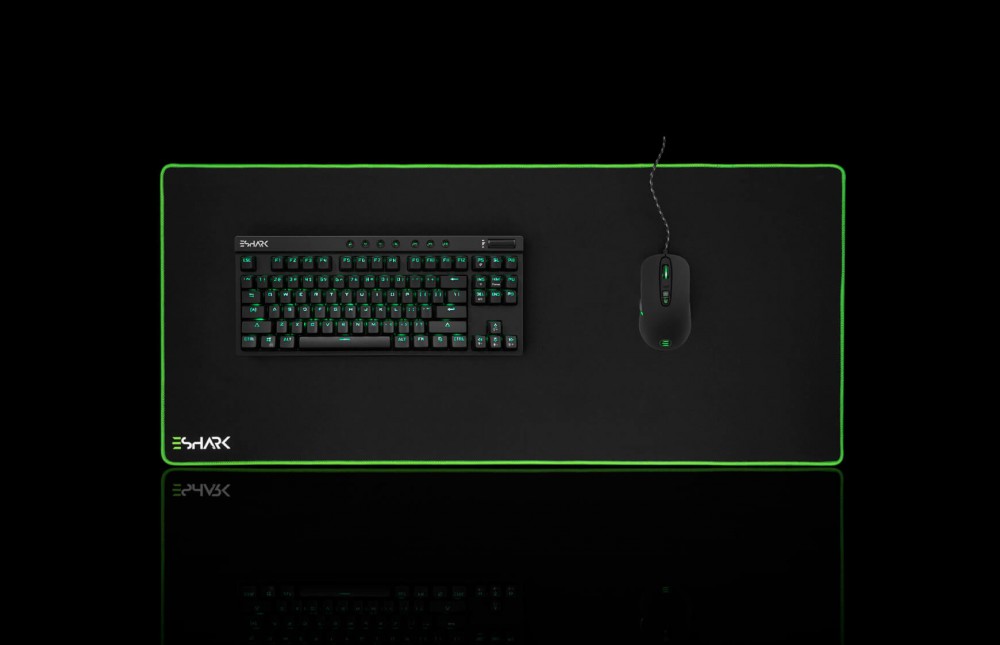 eShark Karuta eSport gamer egérpad 900x400mm, cellurális 3 mm vastag gumitalp, szegett zöld szélek