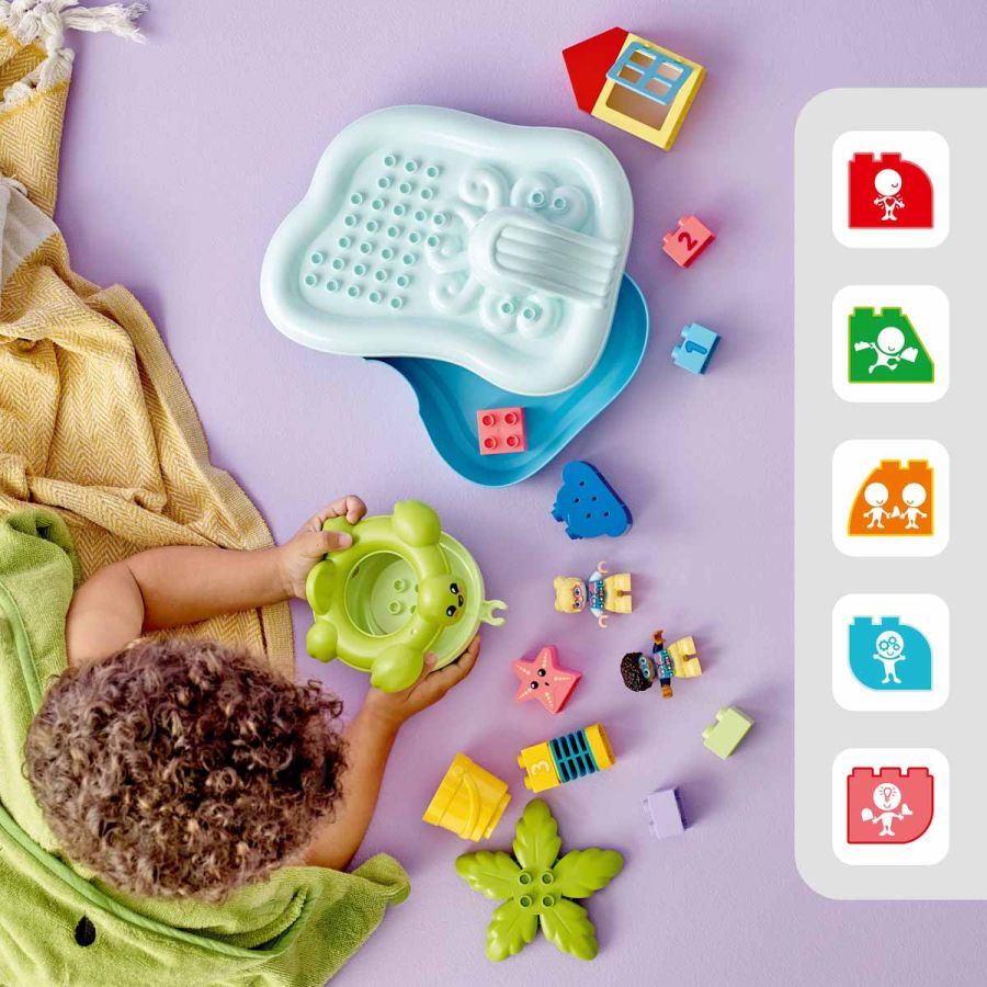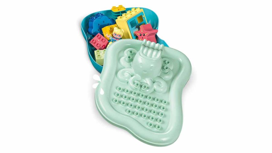 A LEGO DUPLO fejlesztő fürdőjátékokat úgy tervezték, hogy a szülők is elkísérhessék a gyermeket a vidám felfedezőúton. A fürdés végén fel lehet nyitni az úszó gyűrűt, így a felnőttek megszáríthatják és higiénikusan tisztíthatják a fürdőjátékot.