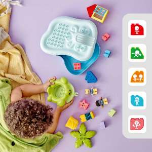 A fejlesztőjáték tartalmaz egy átalakítható pálmafát, amelyet a gyerekek megnöveszthetnek a számozott (1,2,3) kockákkal. Megtölthetik a pálmafa vödrét vízzel, hogy lelocsolják a gyermekfigurát, lecsúsztathatják a kis fürdőzőt a vízi csúszdán, és úsztathatják az aranyos úszóteknőcön. Ha feltöltik a felhőt, akkor esővel boríthatják a mókás játékokat.