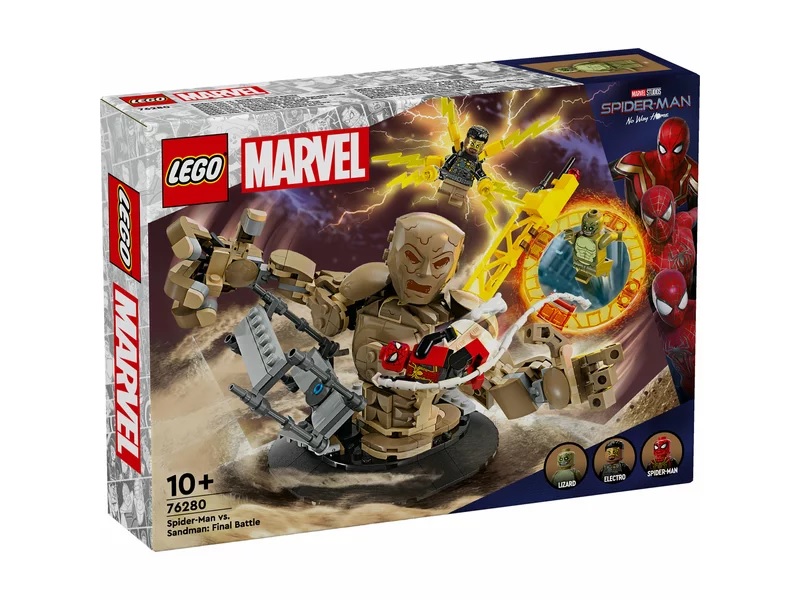 Ha egy menő ajándékot keresel ifjú szuperhősöknek, akkor a LEGO® Marvel Pókember vs. Homokember: A döntő ütközet (76280) megépíthető akciójátéknak biztos, hogy minden kis Marvel-film-rajongó örülne! A Marvel Studios Pókember: Nincs hazaút című film csatajelenetét megörökítő szett remek ajándék a 10 éves vagy annál idősebb gyermekeknek. Ez a sokoldalú, megépíthető LEGO Marvel Pókember szett 3 gonosztevőt tartalmaz: Homokember, Electro és Gyíkember (ez az első LEGO Marvel szett, amelyik Gyíkember minifigurát tartalmaz). A szett végtelen lehetőséget kínál a játékra és a kiállításra, hiszen több helyre is helyezhetők a minifigurák. A gyerekek pörgethetik és forgathatják a csuklós Homokembert, hatalmas karjaival pedig megragadhatják Pókembert, aki épp a feje fölé hintázik a rugalmas hálókötél“ segítségével. A kicsik bővíthetik ezt a megépíthető Marvel-játékot, ha a Pókember, a végső ütközet (76261) szettel kombinálják (külön kapható). Az extra digitális élményért pedig, az építők felnagyíthatják és elforgathatják a modellek 3D-s változatát, és követhetik a haladásukat a vidám és intuitív LEGO Builder appal.