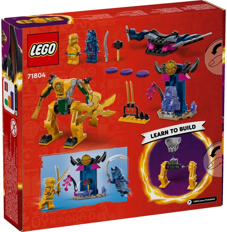 Arin csatagépe (71804) nindzsajáték lehetővé teszi, hogy a 4 éves vagy nagyobb gyerekek megtanuljanak építeni, miközben csatlakoznak nindzsahőseikhez a sárkánybarátaik megmentésében. Ez az akciójáték tartalmaz egy lenyűgöző robotfigurát, hogy inspirálja a gyerekeket a NINJAGO® Sárkányok birodalma című sorozat 2. évadában szereplő izgalmas kalandok újraalkotására.
