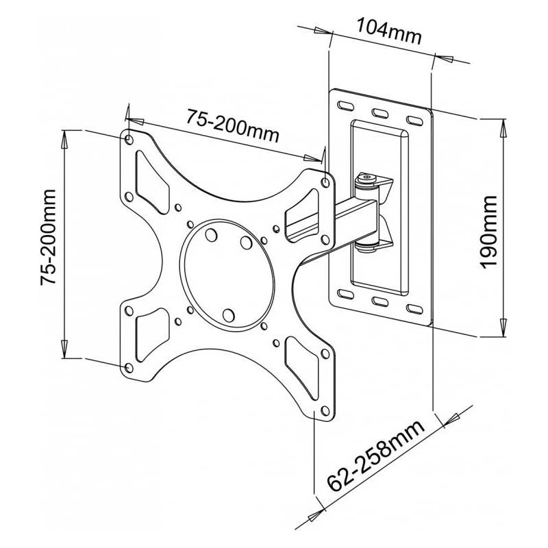 Sbox LCD-2901 19"-37" fali konzol,dönthető,forgatható. VESA 200 X 200. Max. terhelhetőség:25kg. Döntés:±12 °. Faltól való távolság:-.Forgatás:180 ° +180 °