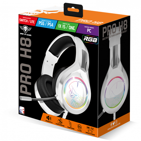 Spirit Of Gamer PRO-H8 RGB Mikrofonos Fejhallgató, Fehér