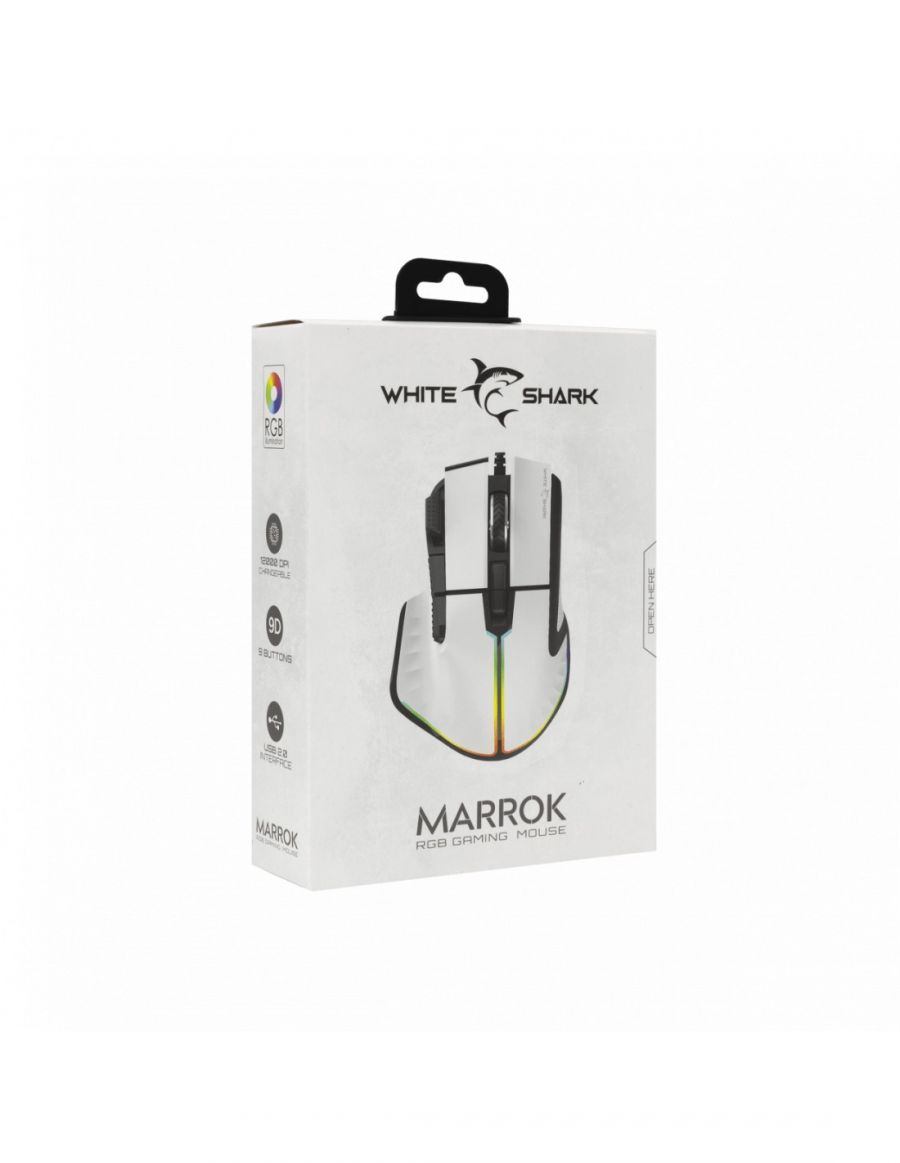 White Shark MARROK Gamer Egér, 12000dpi, 9D, RGB, USB2.0, Fehér